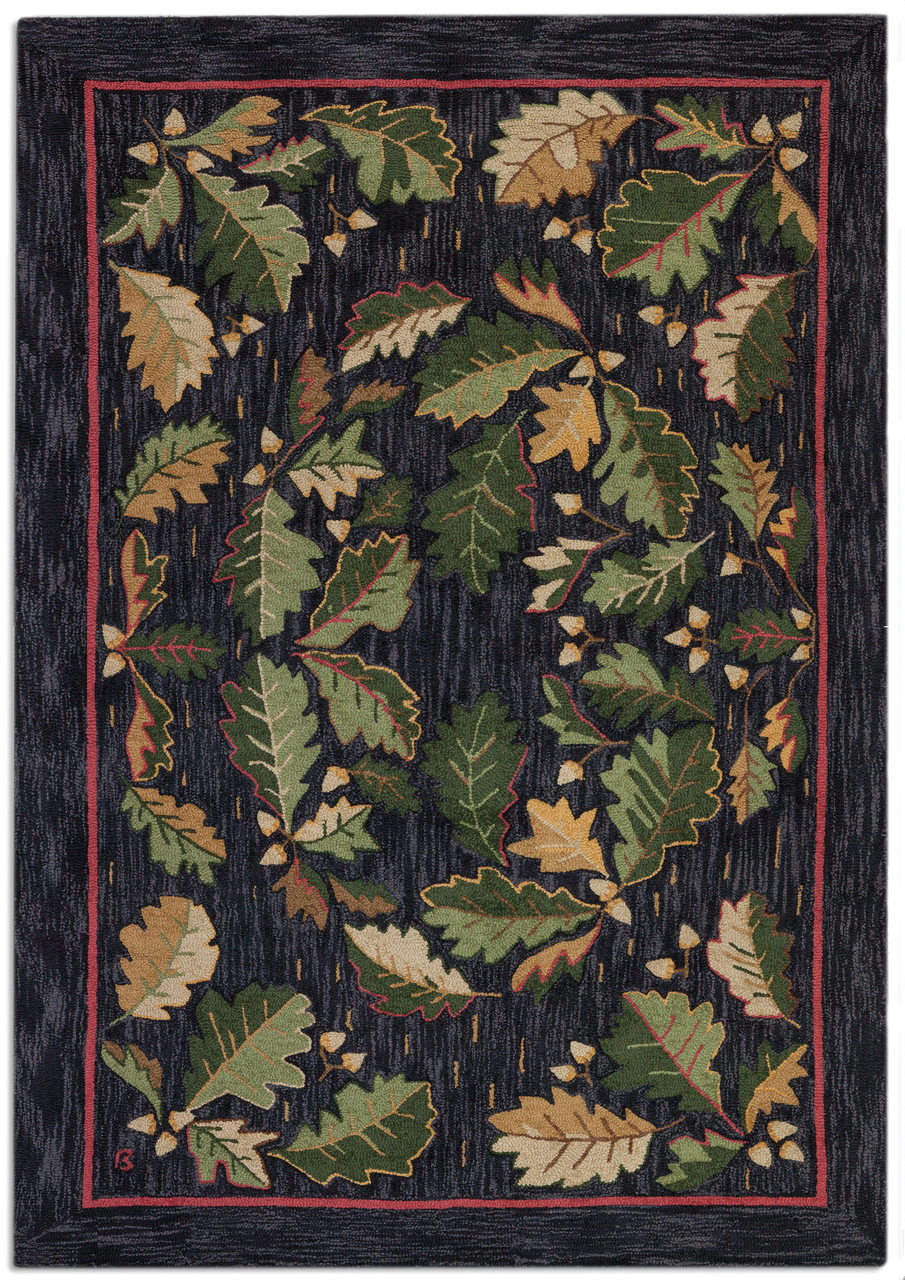 A lovely pattern of acorns and green oak leaves. This is a great small area rug for the cabin and mountain or countr...