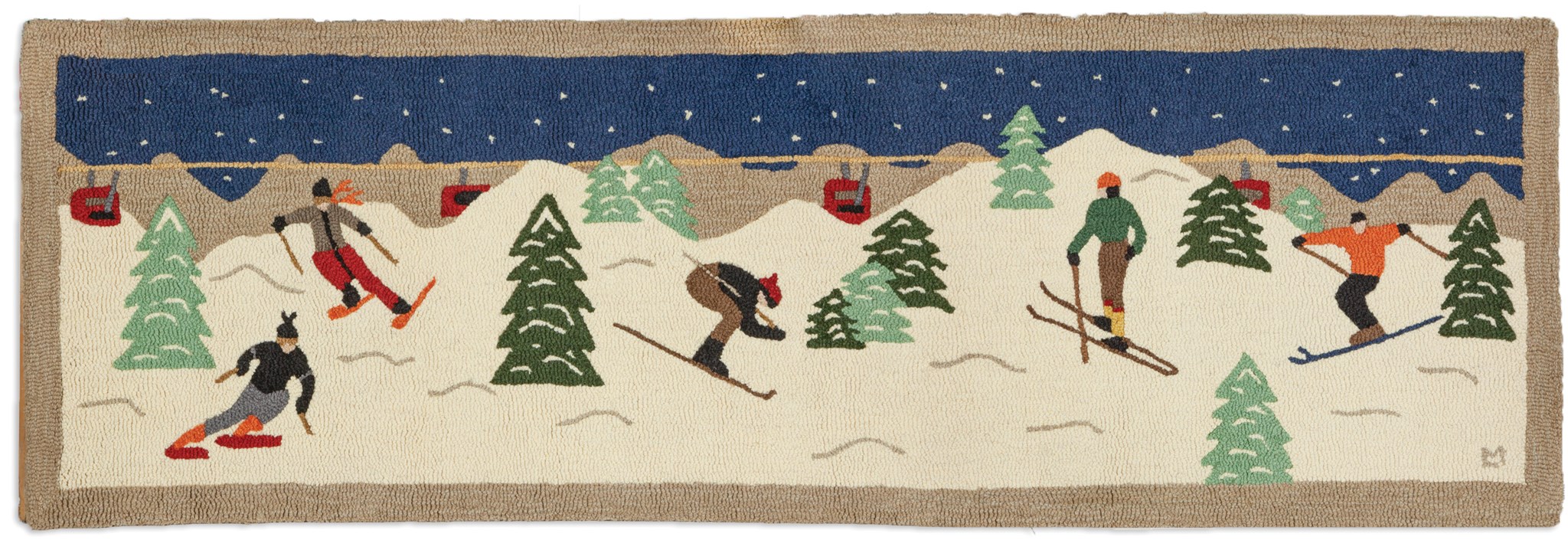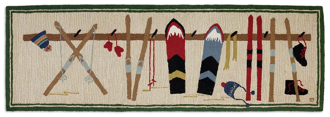 Skiers enjoy soft turns on this decorative hooked wool runner that is a perfect addition to your ski or mountain home.
